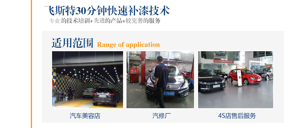 汽車快速補漆技術(shù)不需要烤漆房烘烤,用國際先進的HVLP低壓噴涂系統(tǒng),采用專用快干漆,結(jié)合紅外線烤燈直接烘烤的方式,漆面局部修復只需5~8分鐘就能基本干透,當場可以拋光洗車,極大地節(jié)省時間,既可以滿足消費者的需求,同時大幅度地提高經(jīng)營者的汽車劃痕修復效率,提高日常車流量。修復后質(zhì)量終生質(zhì)保。